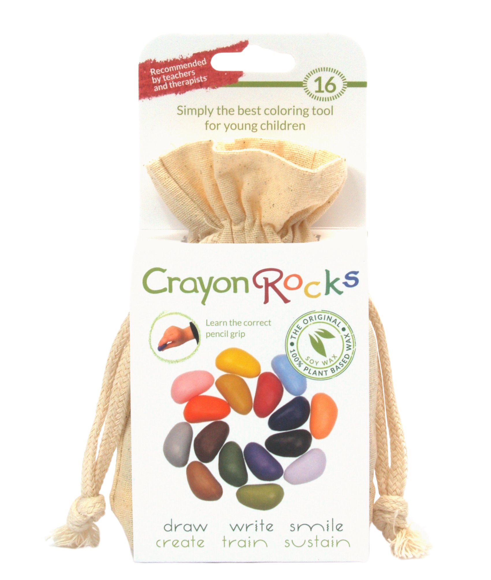 Mit den Sojawachsmalstiften von Crayon Rocks® können kleine Kinder das Zeichnen und Malen ohne Frustration genießen. Der Buntstift in Form eines Steins hält schön und entspannt, stimuliert den Dreipunktgriff und überträgt mühelos Farbe auf Papier. Crayon Rocks wurden entwickelt, um den Stiftgriff und die Muskeln des Kindes angenehm zu stärken und die Finger auf das Schreiben vorzubereiten.