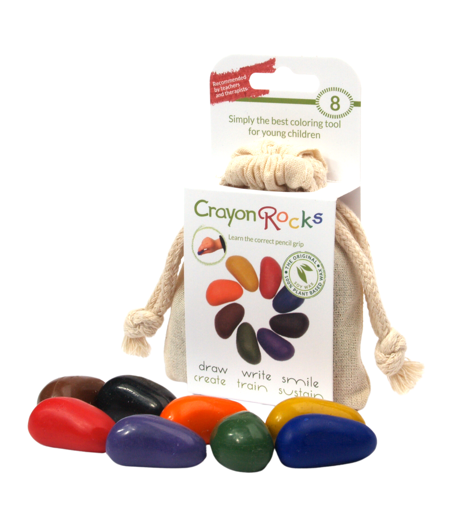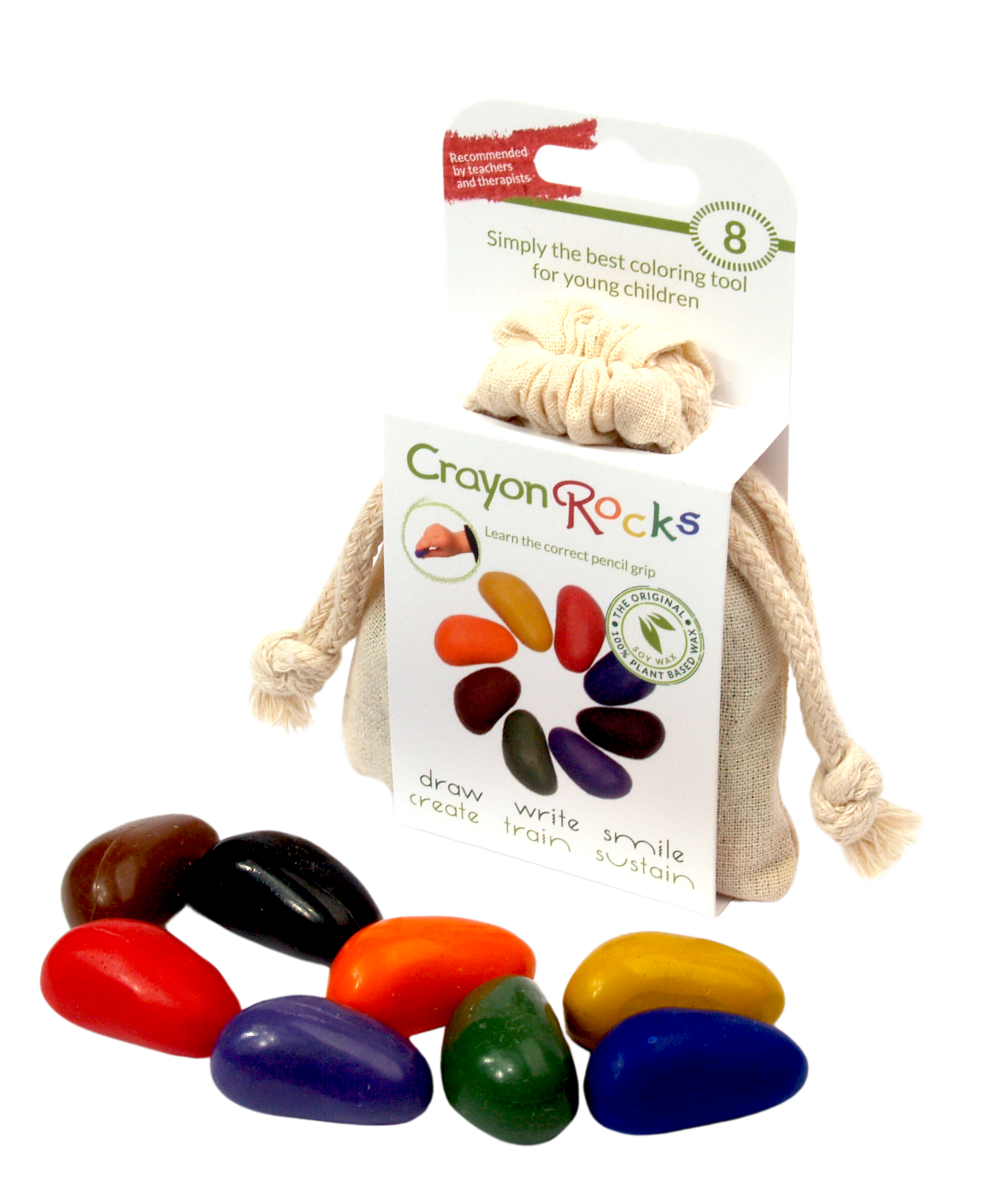 Mit den Sojawachsmalstiften von Crayon Rocks® können kleine Kinder das Zeichnen und Malen ohne Frustration genießen. Der Buntstift in Form eines Steins hält schön und entspannt, stimuliert den Dreipunktgriff und überträgt mühelos Farbe auf Papier. Crayon Rocks wurden entwickelt, um den Stiftgriff und die Muskeln des Kindes angenehm zu stärken und die Finger auf das Schreiben vorzubereiten.