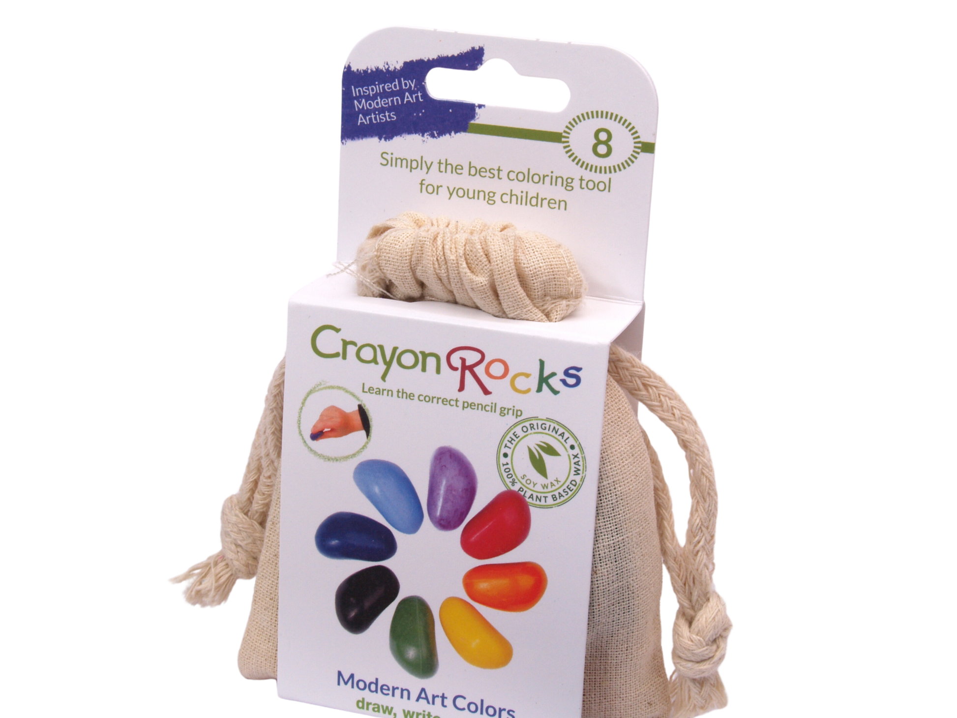 Mit den Sojawachsmalstiften von Crayon Rocks® können kleine Kinder das Zeichnen und Malen ohne Frustration genießen. Der Buntstift in Form eines Steins hält schön und entspannt, stimuliert den Dreipunktgriff und überträgt mühelos Farbe auf Papier. Crayon Rocks wurden entwickelt, um den Stiftgriff und die Muskeln des Kindes angenehm zu stärken und die Finger auf das Schreiben vorzubereiten.