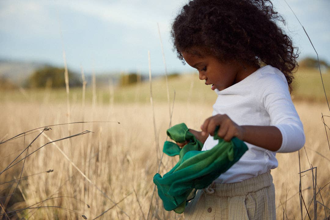 Die Mini Earth Playsilks verfügen über wunderschön gemischte Farben, die so konzipiert sind, dass Kinder damit die Elemente der Natur entdecken können.
