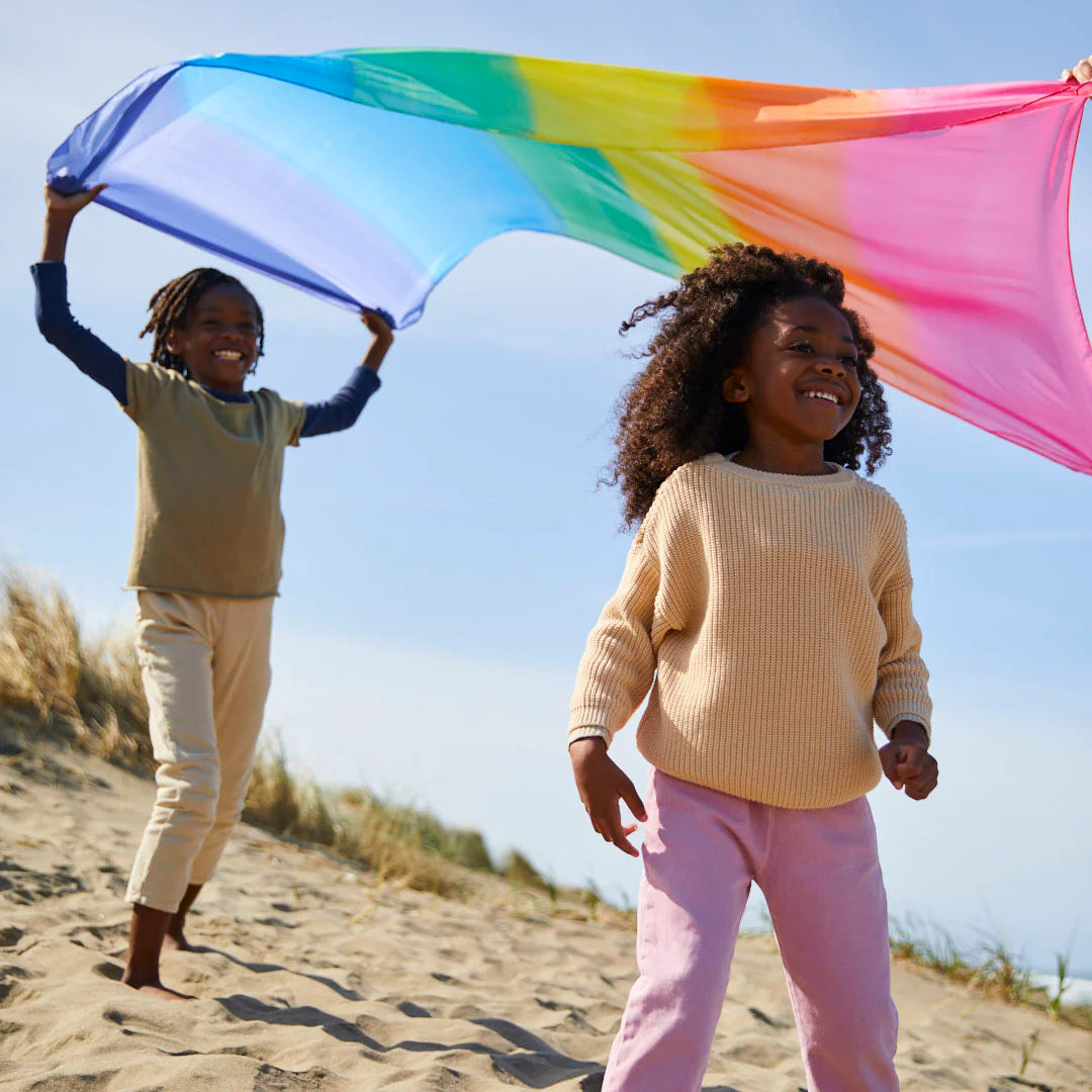 Die riesigen Playsilks sind vielseitig zu verwenden - ob als Fallschirm, für einen Baldachin über einem Bett oder als bunte Kulisse für ein Puppenspiel. Der Fantasie sind keine Grenzen gesetzt.